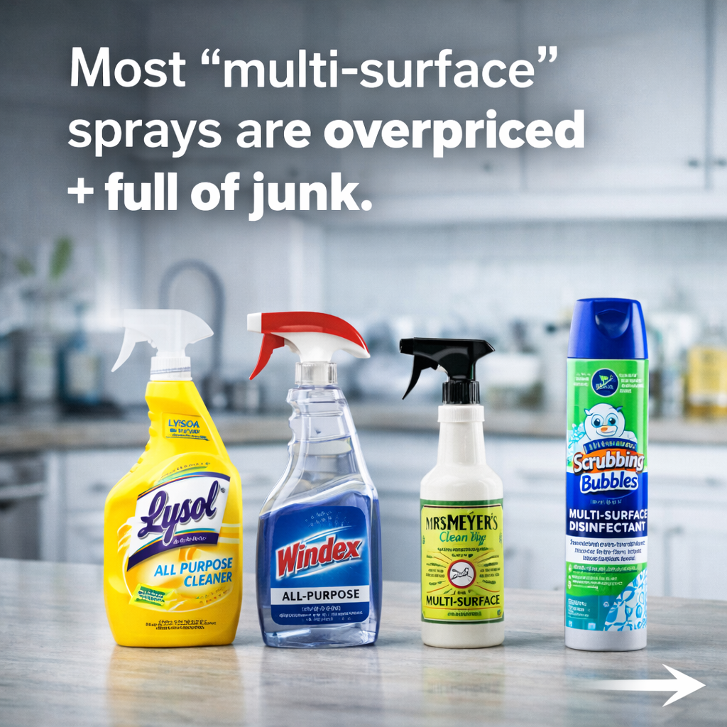 Store-bought “multi-surface” cleaners are expensive, clutter your cabinets, and often contain ingredients you don’t need. The good news? You can make a simple, effective cleaner at home in just a few minutes — using items you probably already have.